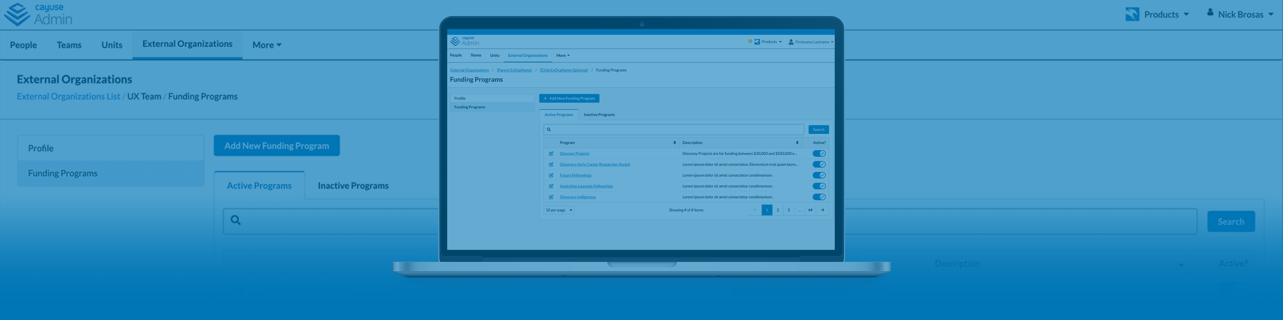 Leading design for the Admin/Platform team: Connecting 10+ products to Cayuse's platform