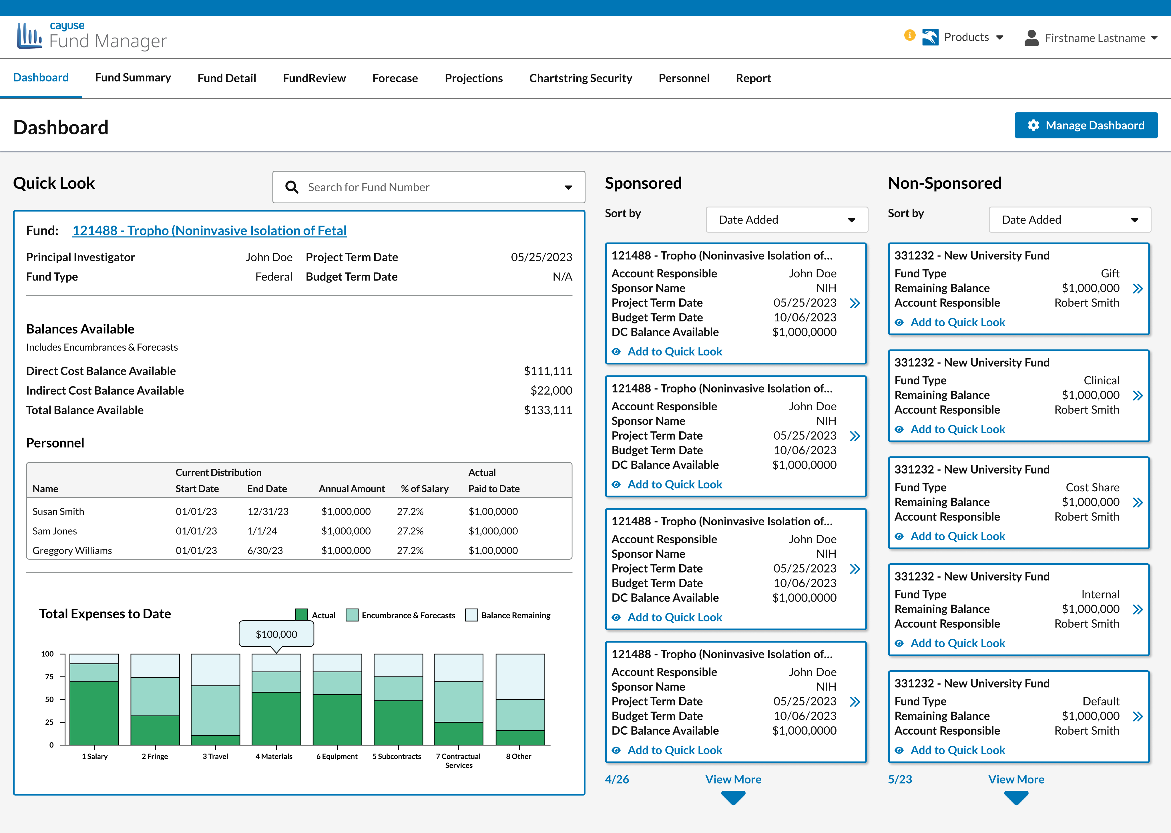 Fund Manager's main screen was an incomplete data table with useless information, built an old 3rd-Party framework. Fund Manager usage was low, as quick information was not readily available , and it was hard to find the more detailed data users needed.