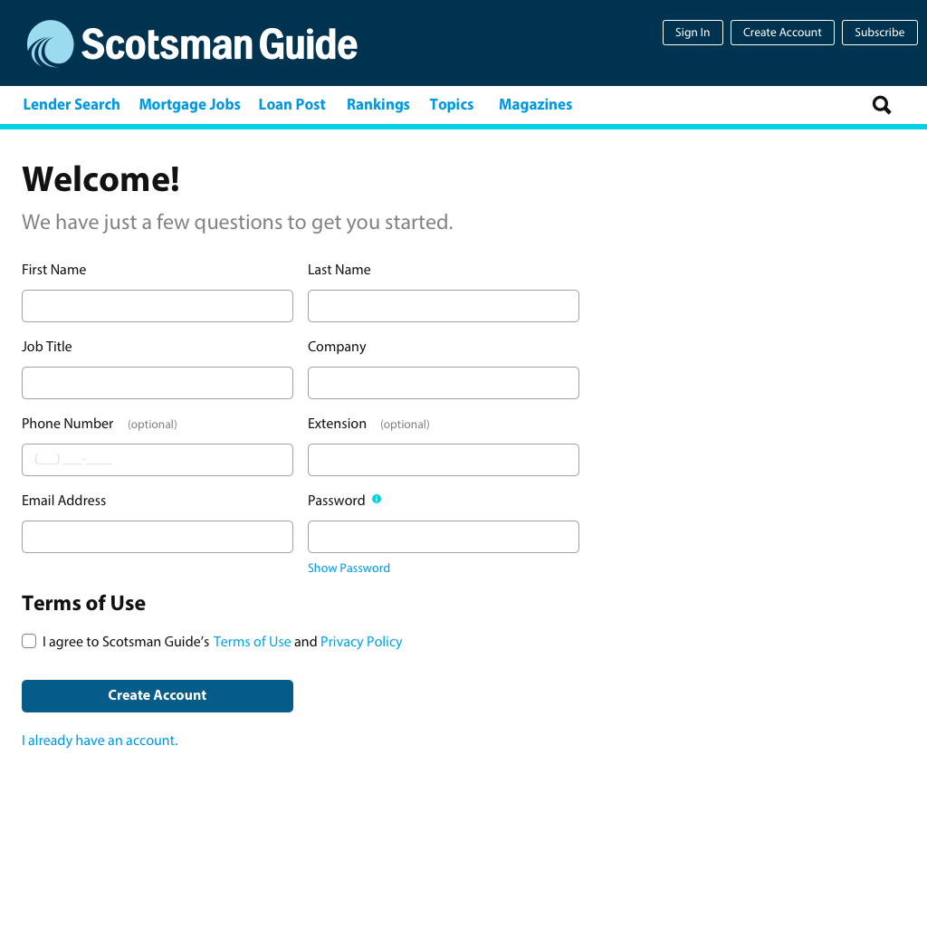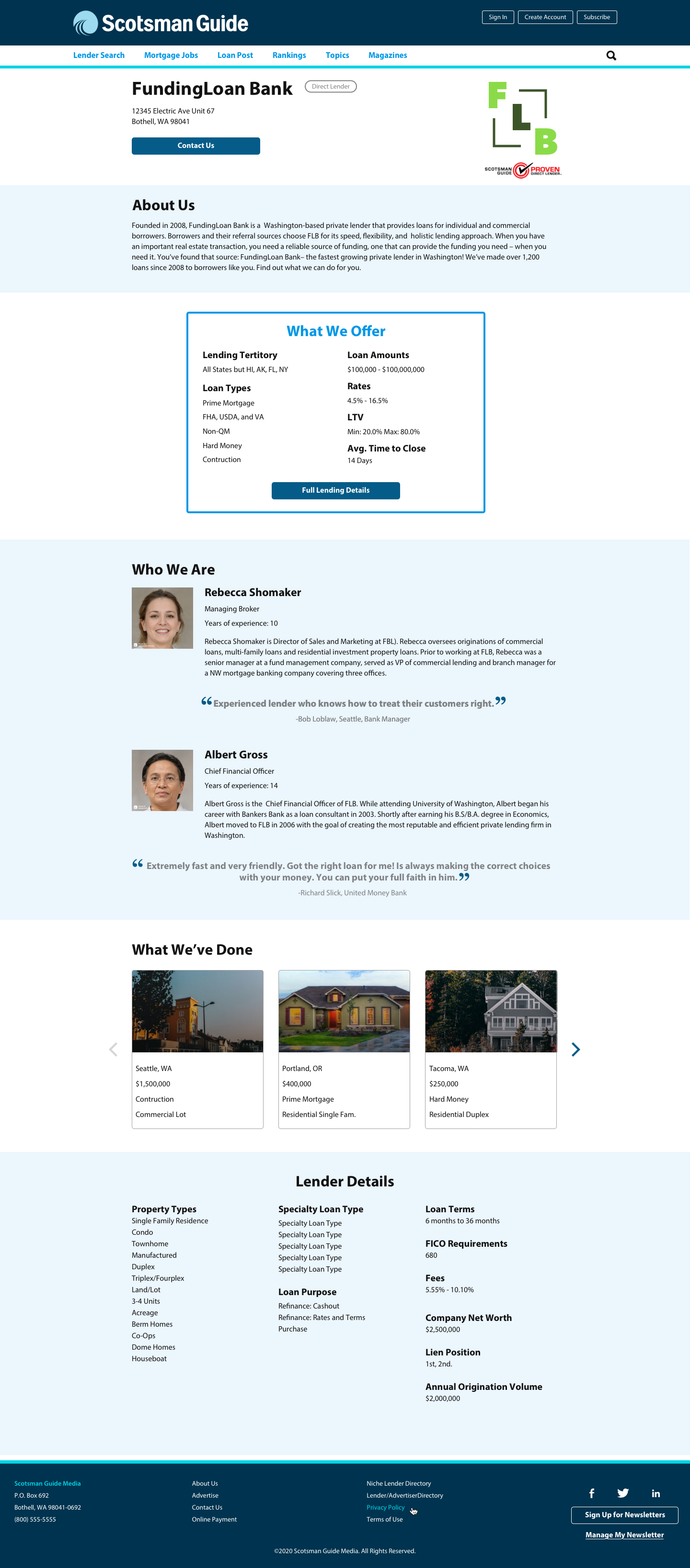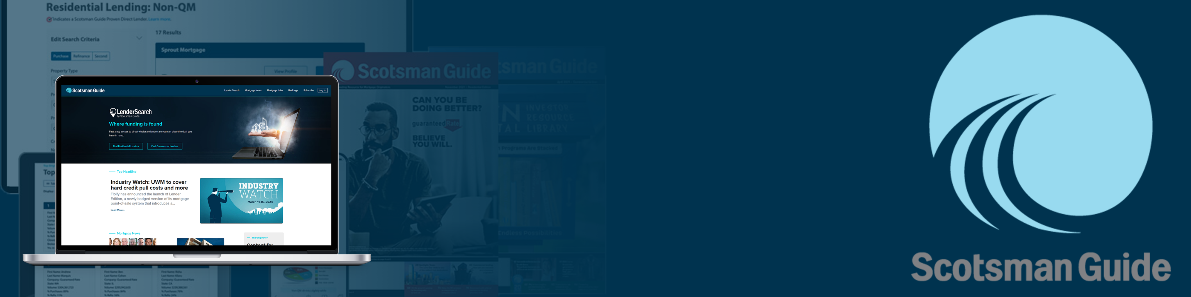 Per Scotsman Guide's website: "Scotsman Guide's mission is to help mortgage originators expand their lending networks, close more deals, and grow their businesses". Scotsman Guide's main products were the digital Lender Search and magazine publication.