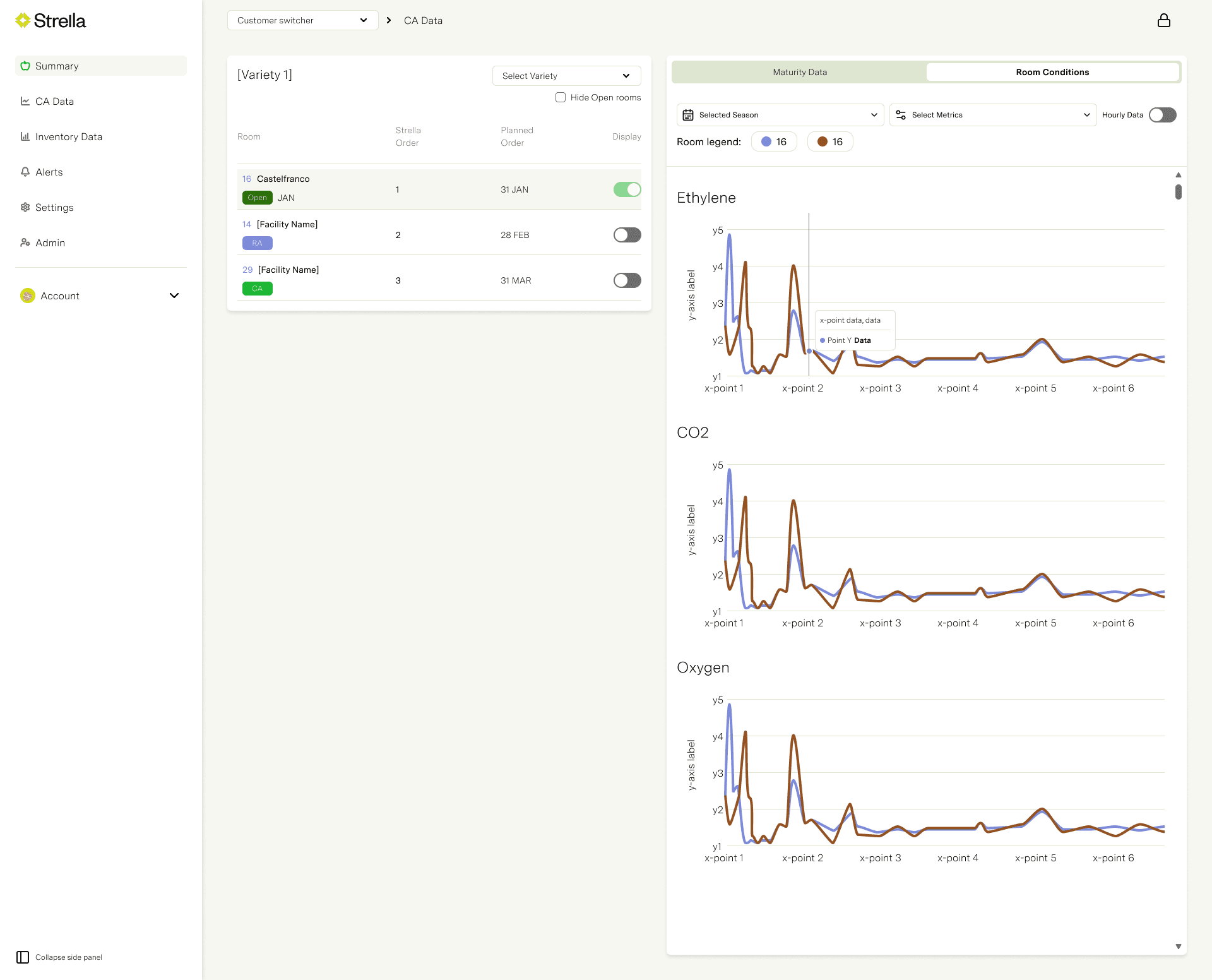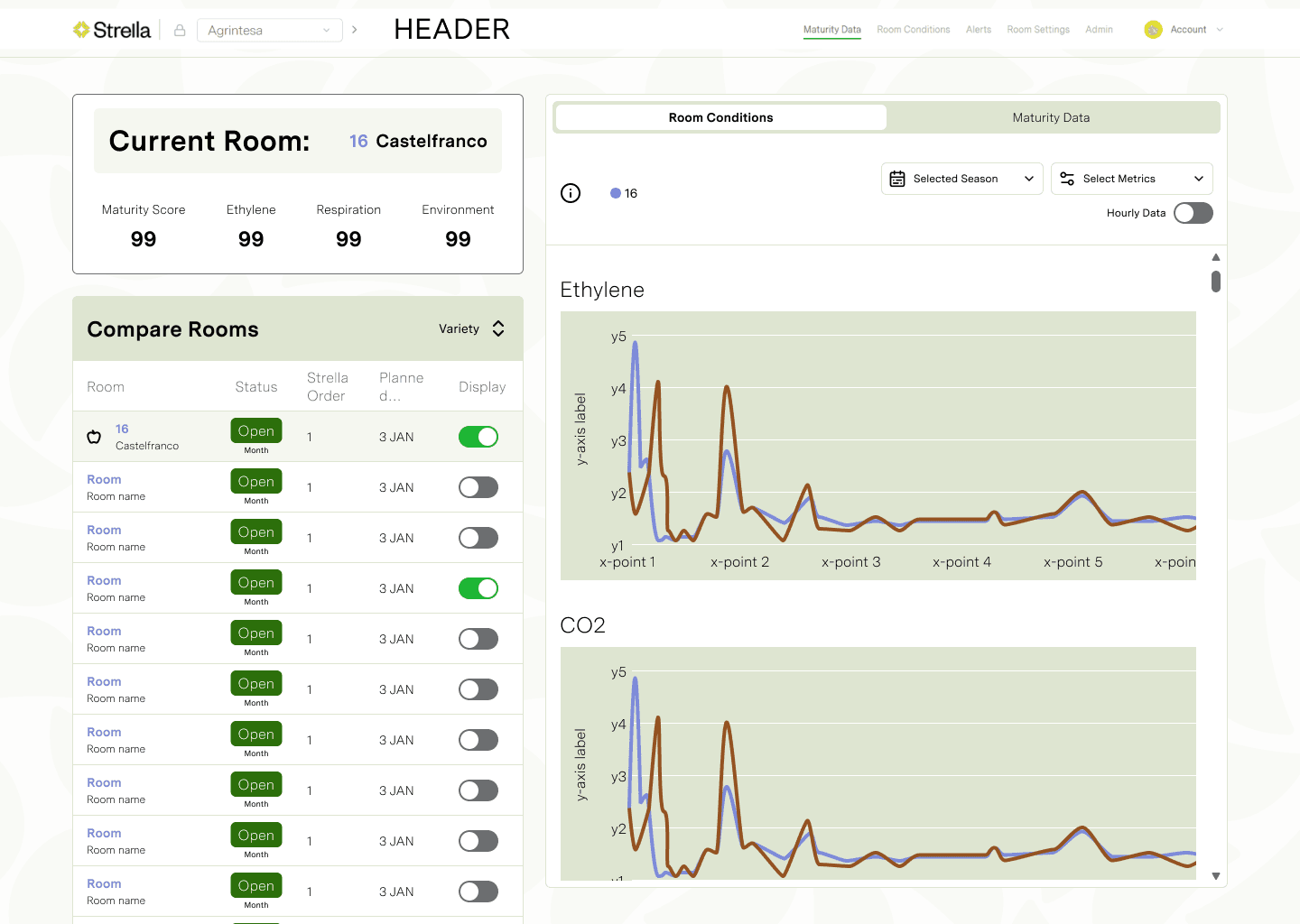 Strella is a biotech company whose main product is setting up sensors in produce storage rooms, and monitoring the bio-data from a dashboard. Businesses can determine when the maturity of the produce is to ship out, thus reducing waste of produce.